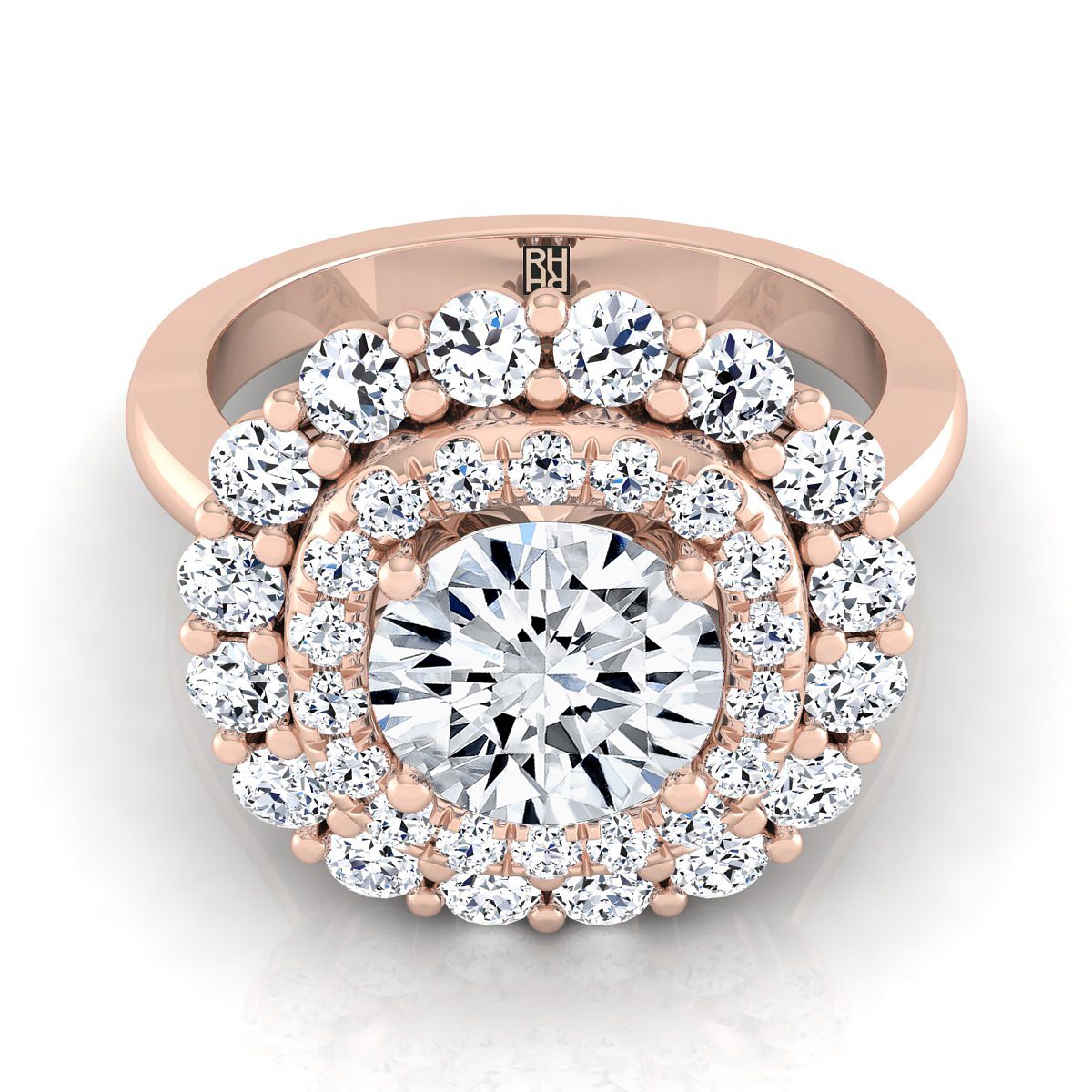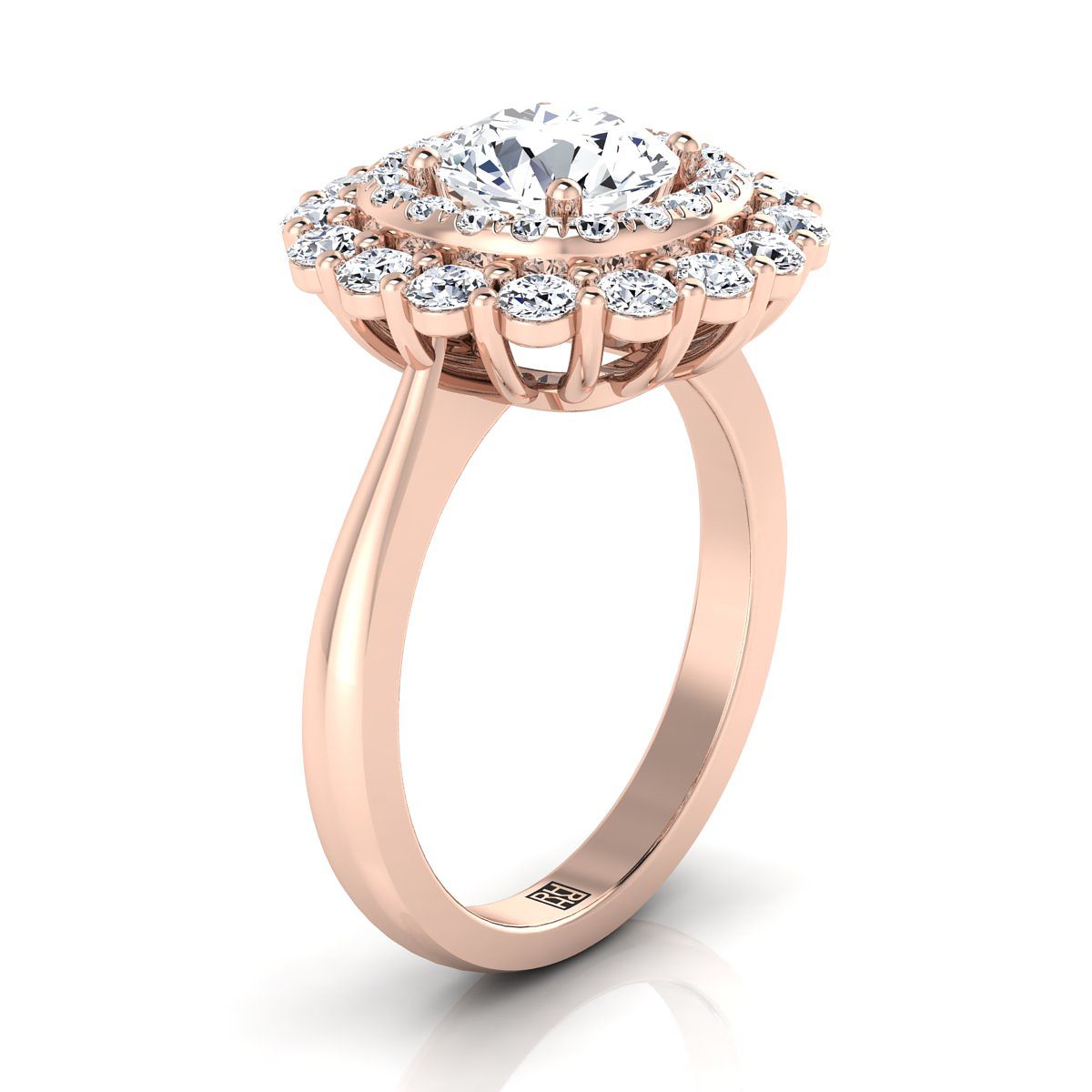 แหวนหมั้นแบบดับเบิลเพฟ ฮาโลว์ ที่ทำด้วยมืออย่างประณีตนี้ โชว์เพชรเจียระไนแบบบริลเลียนต์ (h-i/vs 1.00ctw) ที่ประดับอย่างสวยงามในตัวเรือนทองกุหลาบ 14k คลาสสิก.