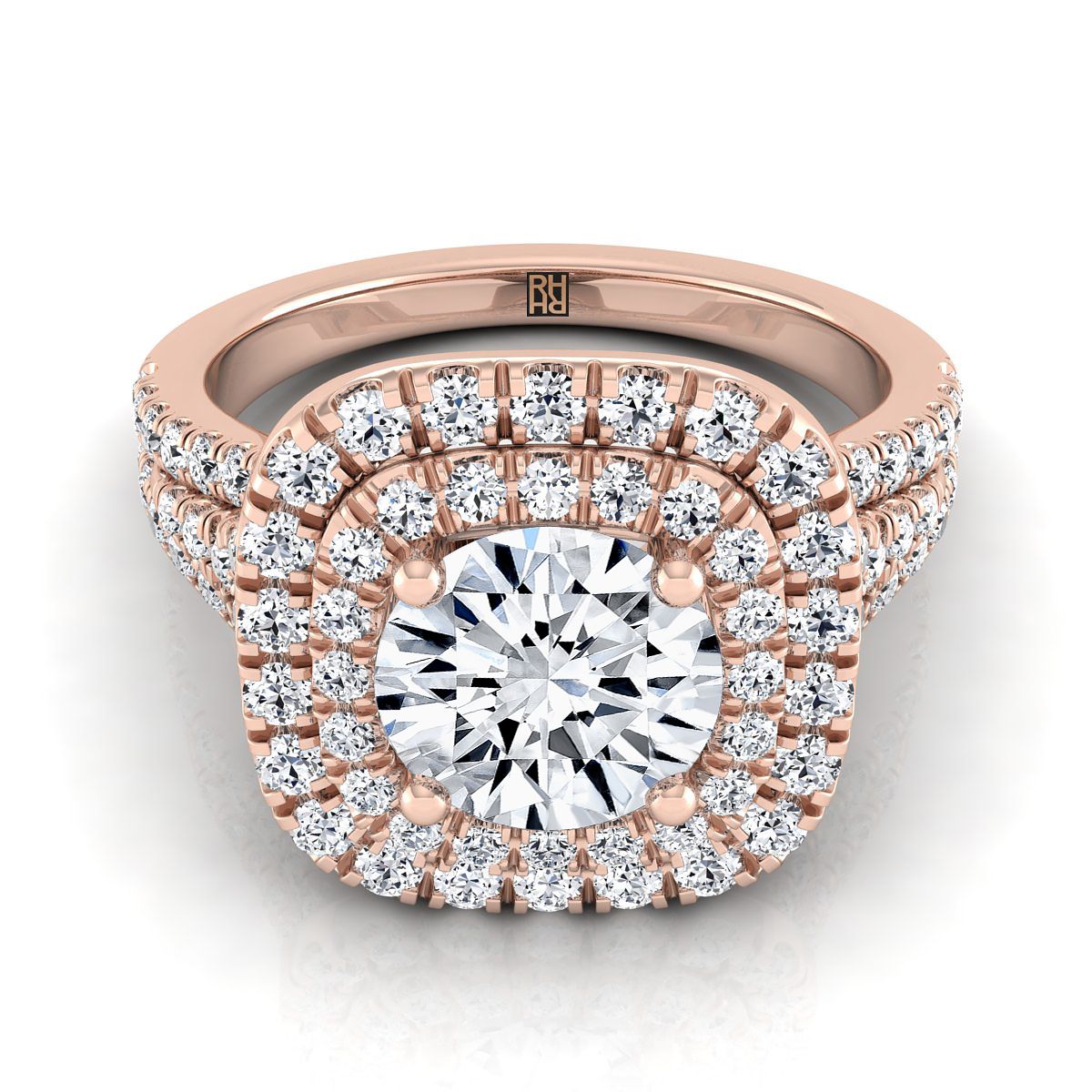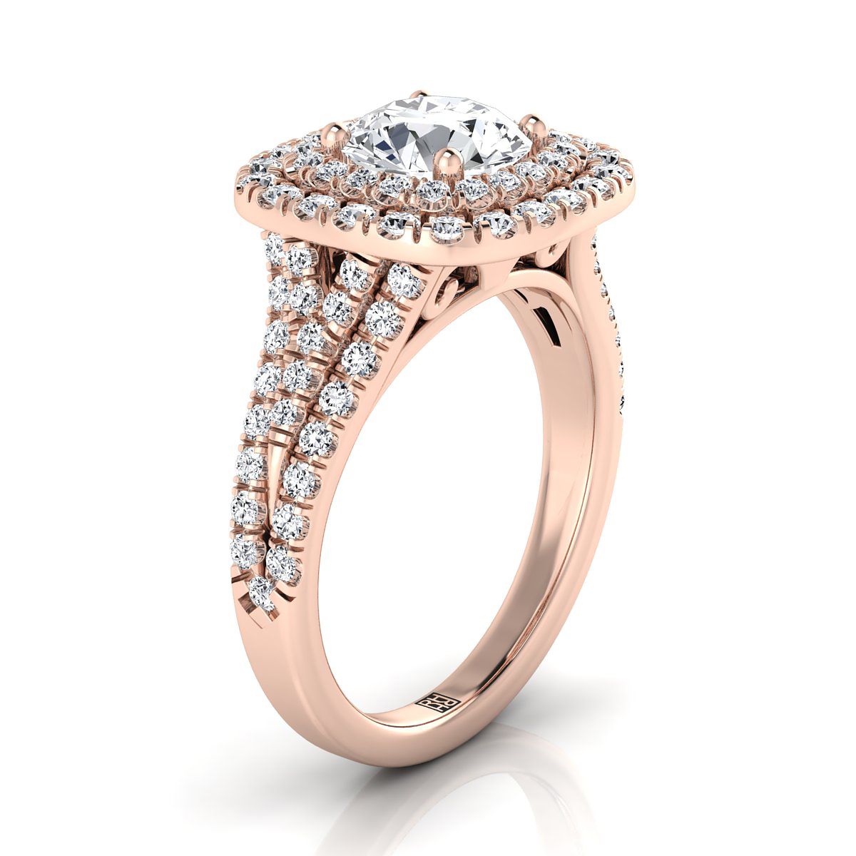 แสดงสไตล์อย่างสง่างาม แหวนหมั้นแบบดับเบิลฮาโลพาเว่ห์นี้นำเสนอเพชรเจียระไนแบบบริลเลียนต์ (h-i/vs 0.80ctw) พร้อมกับแถบพาเว่ห์ที่ประณีตติดตั้งในตัวเรือนทองกุหลาบ 14k