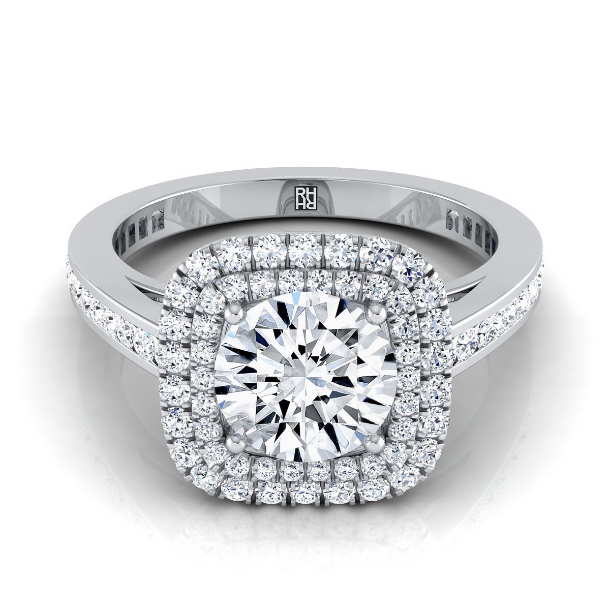 แหวนหมั้นแบบดับเบิลเพฟ ฮาโลว์ ที่ทำด้วยมืออย่างประณีตนี้ โชว์เพชรเจียระไนแบบบริลเลียนต์คัต (h-i/vs 0.65ctw) ที่ประดับอย่างสวยงามในตัวเรือนทองคำขาว 18k คลาสสิก