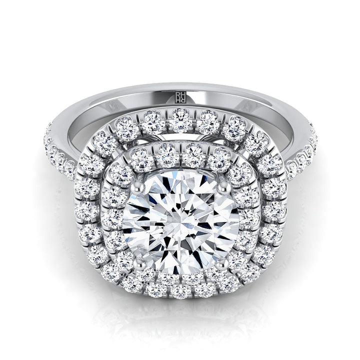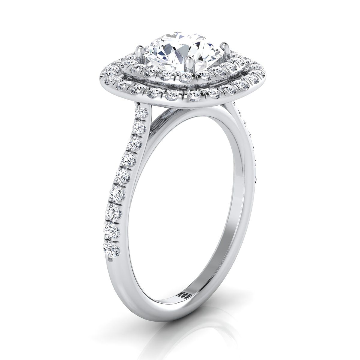 แหวนหมั้นเพชรทรงกลมเจียระไนแบบ Brilliant สีทองขาว 18K พร้อม Halo คู่และ Pavé แบบ Scalloped - 1/2ctw
