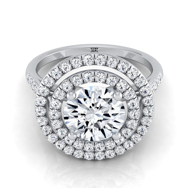 แหวนหมั้นแบบดับเบิลฮาโลที่ทำด้วยมืออย่างประณีตนี้ โชว์เพชรเจียระไนแบบ Brilliant Cut (h-i/vs 0.50ctw) ที่ประดับอย่างสวยงามในตัวเรือนทองคำขาว 18 กะรัตแบบคลาสสิก