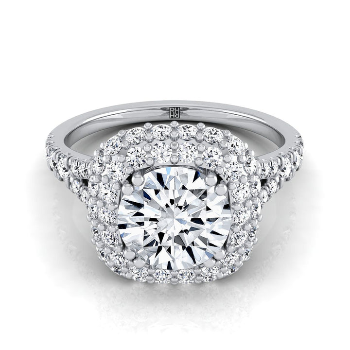 แหวนหมั้นเพชรทรงกลมเจียระไนแบบบริลเลียนท์แพลทินัม ดับเบิลฮาโล สปลิตแชงค์ ฝรั่งเศสปาเว่ - 5/8ctw