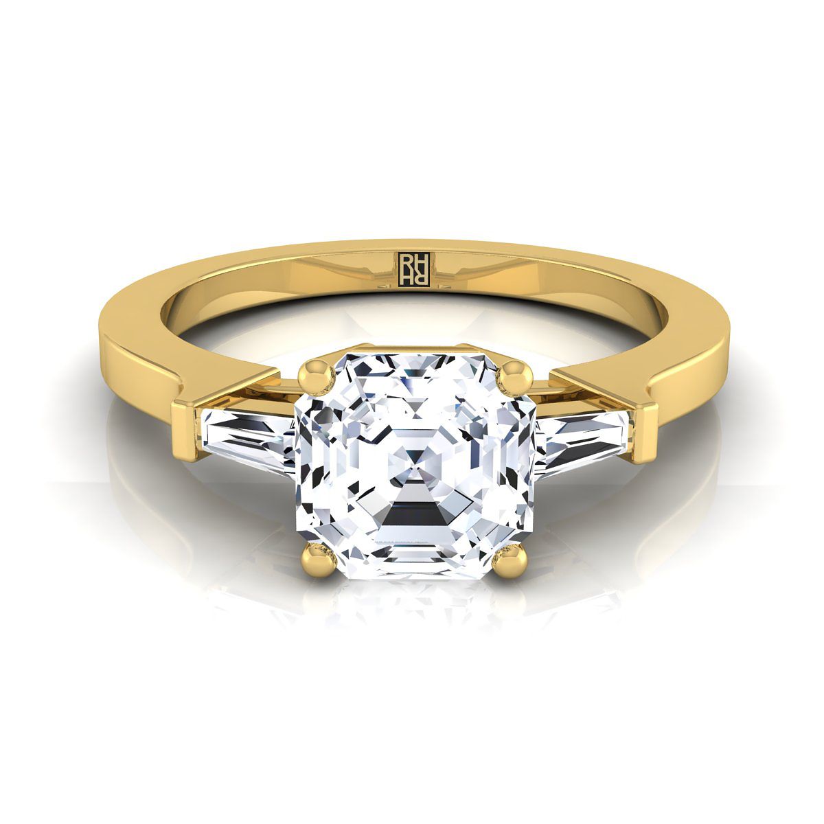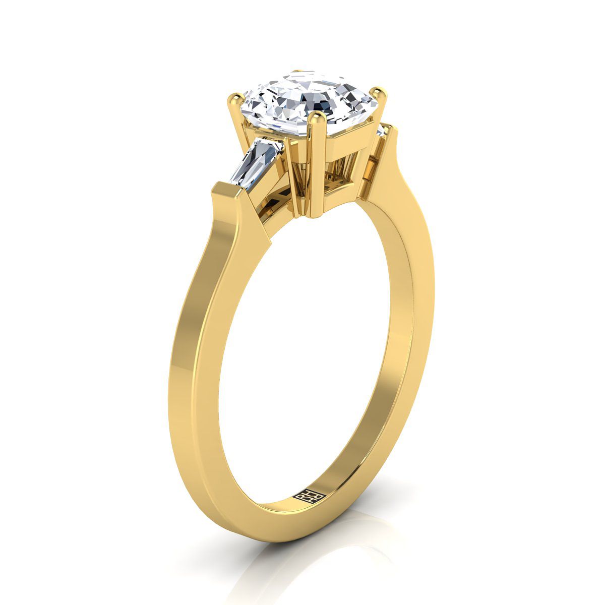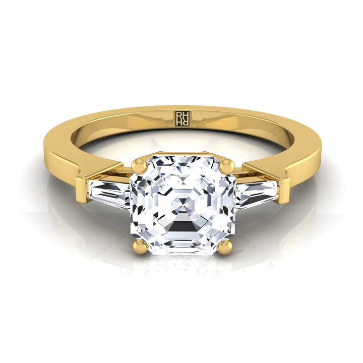 แหวนหมั้นประดับเพชรทรงแอสเชอร์ ตัดแต่งด้วยบาแกตต์เรียว ประดับด้วยทองคำเหลือง 18K - 1/4 กะรัตรวม