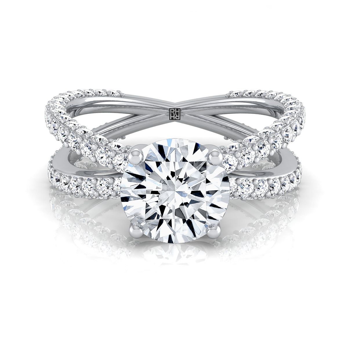 แหวนหมั้นเพชรแบบไขว้ประดับเพชรเม็ดกลมเจียระไนแบบ Brilliant Open ประดับเพชรปาเว่ทองขาว 14K น้ำหนักรวม 1-1/3 กะรัต