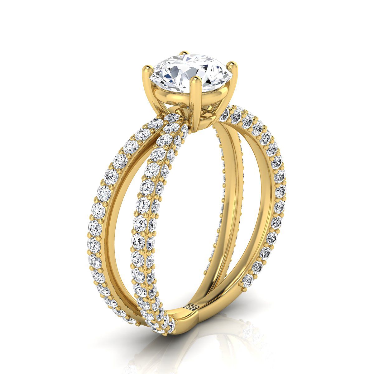 แหวนหมั้นเพชรแบบไขว้ประดับเพชรแบบปาเว่ทรงกลมเจียระไนแบบบริลเลียนต์เปิดทองคำเหลือง 14K -1-1/3ctw