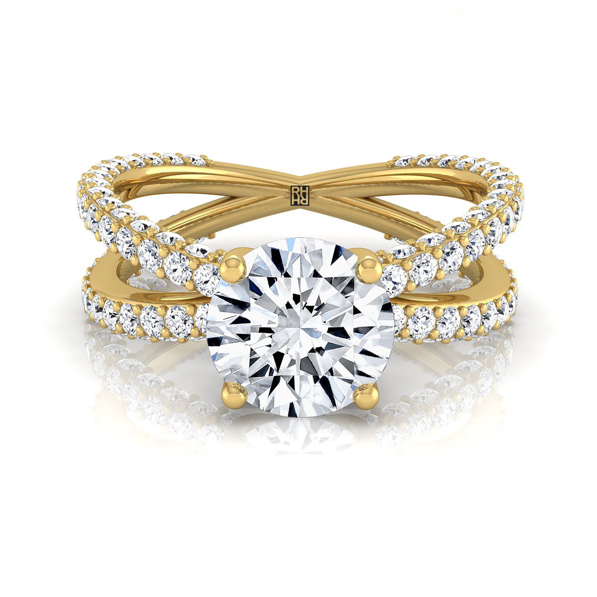 แหวนหมั้นเพชรแบบไขว้ประดับเพชรแบบปาเว่ทรงกลมเจียระไนแบบบริลเลียนต์ทองคำเหลือง 18K -1-1/3ctw