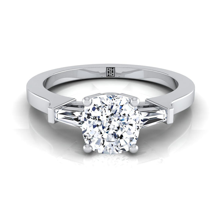 แหวนหมั้นเพชรทรงหมอนทองคำขาว 18K ประดับเพชรบาแกตต์แบบเรียว - 1/4 กะรัตรวม