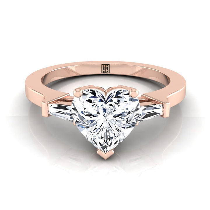 แหวนหมั้นทองคำชมพู 14K รูปหัวใจ ประดับเพชรกลาง เพชรบาเก็ต tapered -1/4ctw