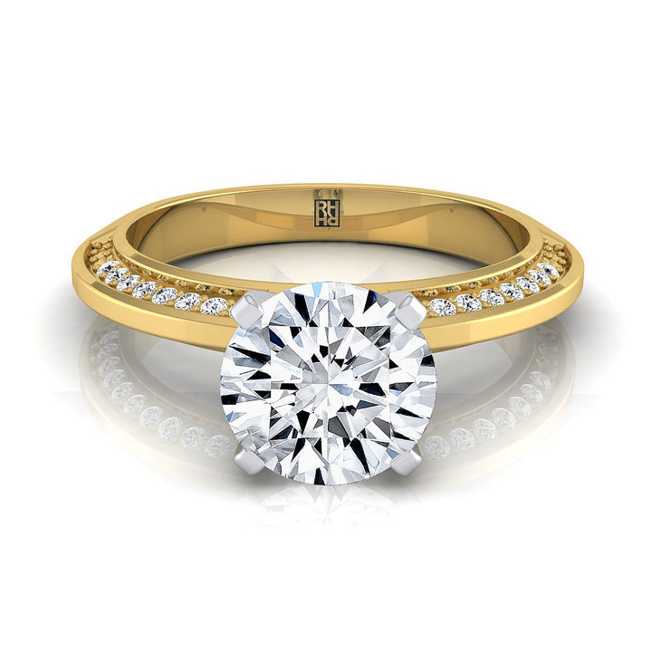 แหวนหมั้นเพชรทรงกลมเจียระไนแบบ Brilliant ขอบมีดไมโครเพฟทองคำเหลือง 18K - 1/5 กะรัตรวม