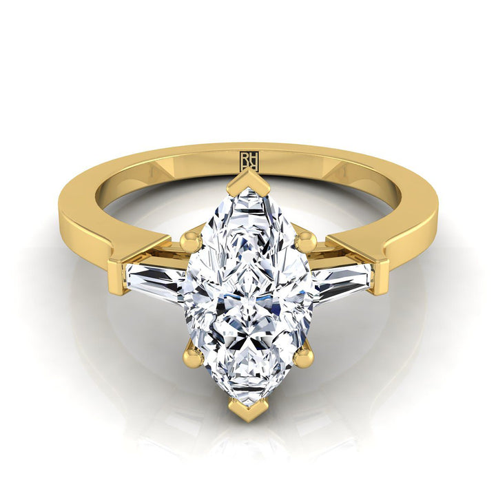 แหวนหมั้นประดับเพชรทรงมาร์คีส์และเพชรบาแกตต์เรียวแต่งด้วยทองคำเหลือง 18K - 1/4 กะรัตรวม