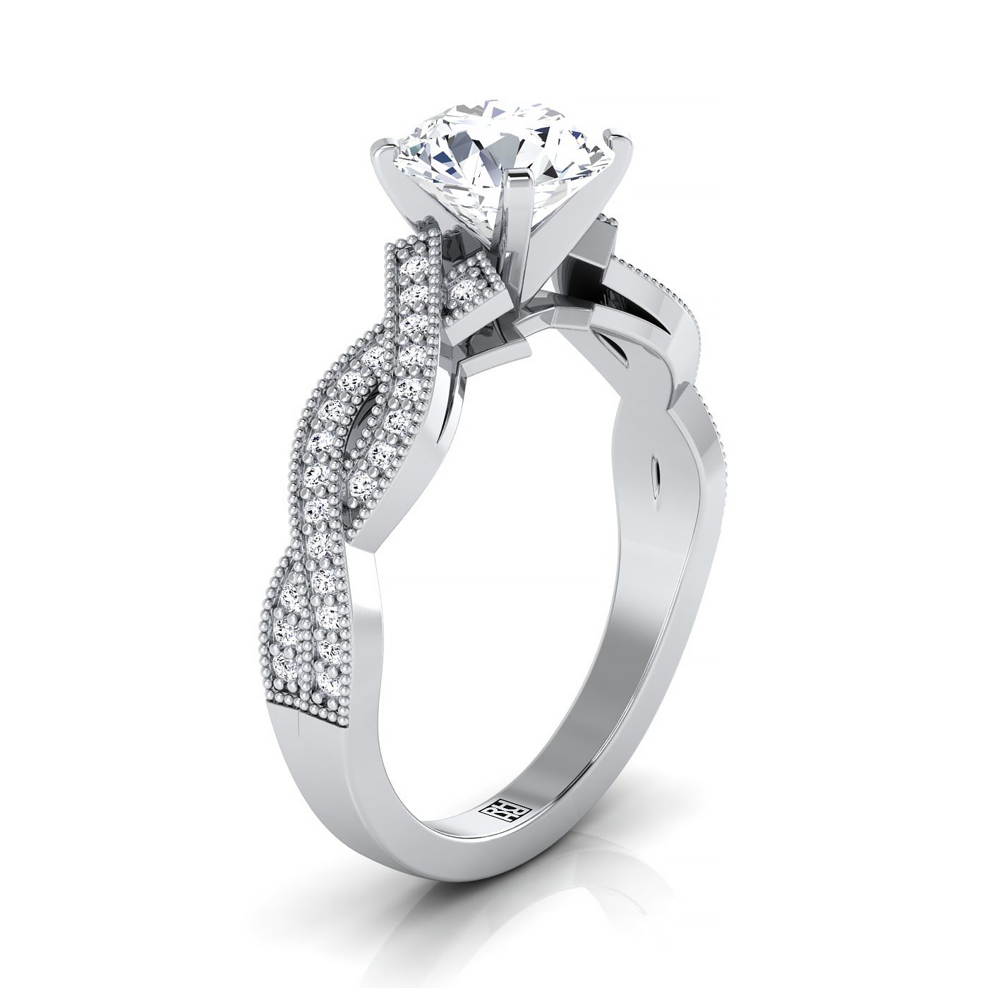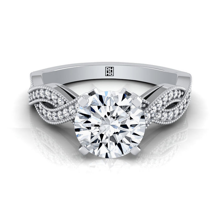แหวนหมั้นทรงกลมที่มีเสน่ห์ พร้อมชิ้นส่วนแถบวงแหวนสไตล์อินฟินิตี้แบบมิลเกรนที่ประดับด้วยเพชรทรงกลมเจียระไนแบบบริลเลียนท์ (h-i/vs 0.20ctw) ประดับอย่างสวยงามในทองคำขาว 14 กะรัต