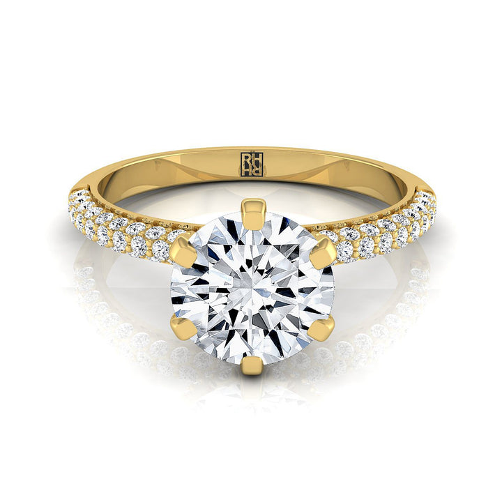 แหวนหมั้นเรียบง่ายฝรั่งเศสประดับเพชรทรงกลมเจียระไนแบบ Brilliant 3 แถวทองคำเหลือง 18K - 1/3ctw