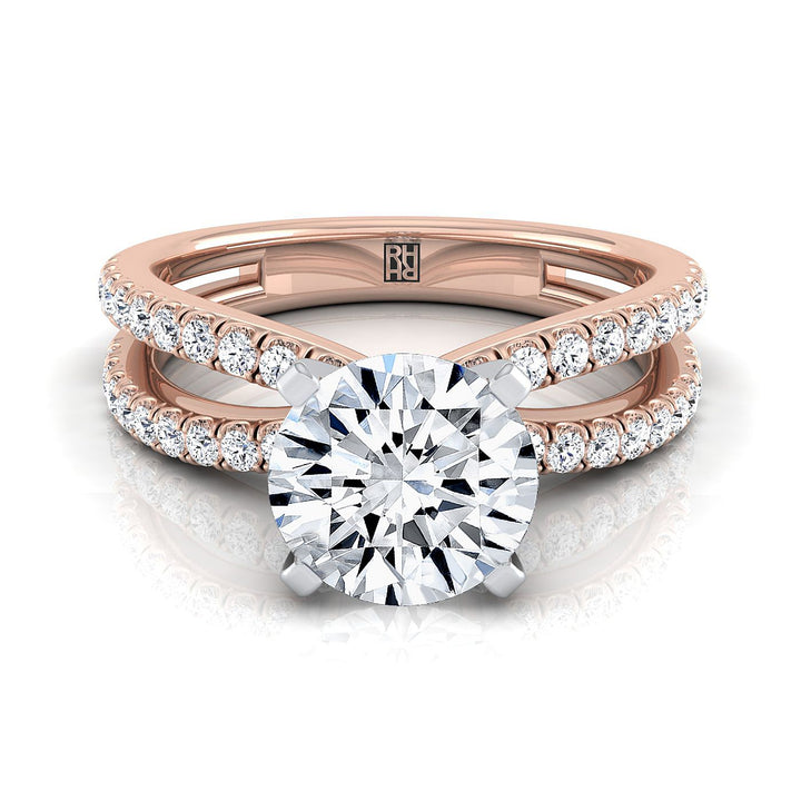 แหวนหมั้นทองคำชมพู 14K ประดับเพชรทรงกลมเจียระไนแบบ Brilliant สองแถวแบบ Pavé พร้อมแยกชิ้นแหวน - 1/3ctw