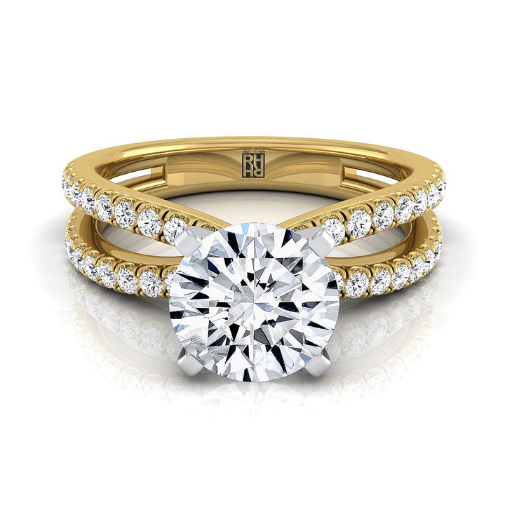 แหวนหมั้นทองคำเหลือง 18K ประดับเพชรทรงกลมเจียระไนแบบ Brilliant สองแถวแบบ Pavé พร้อมแยกชิ้นแหวน - 1/3ctw