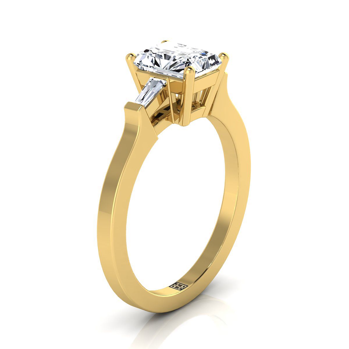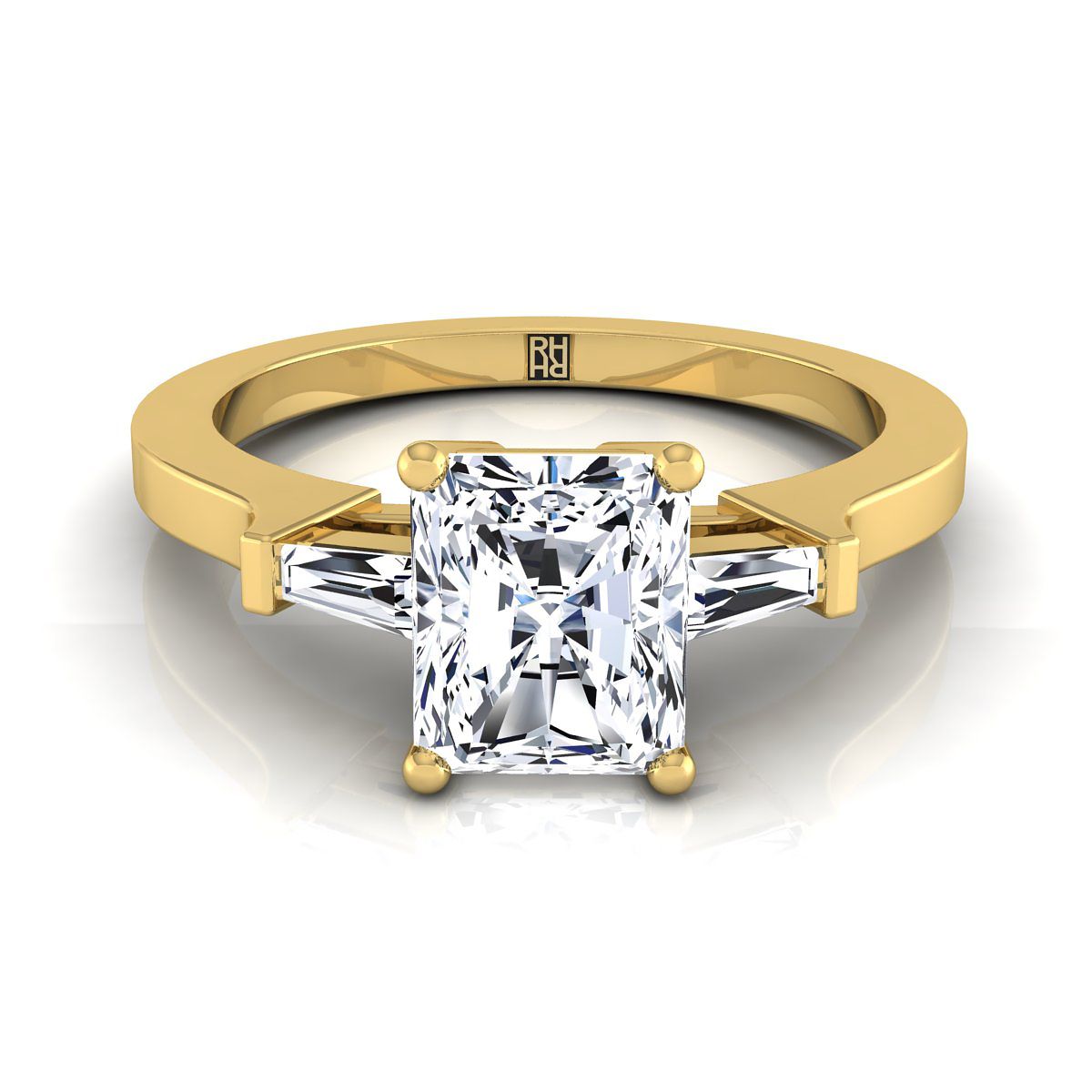 แหวนหมั้นทองคำเหลือง 14K ประดับเพชรกลางทรงเรเดียนต์ ตัดแต่งด้วยเพชรบาแกตต์แบบเรียว - 1/4 กะรัตรวม