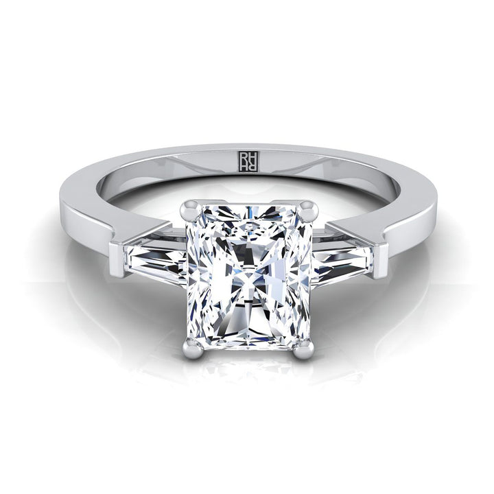 แหวนหมั้นเพชรเม็ดกลางทรงเพชรเจียระไนแบบ Radiant Cut แพลตตินัม ประดับเพชรข้างทรง Baguette แบบเรียว - 1/4ctw