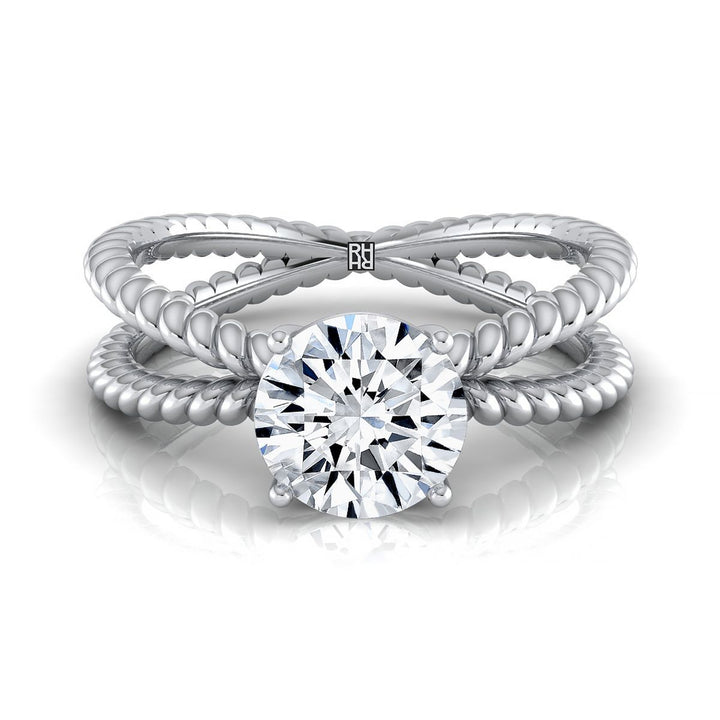 แหวนหมั้นเดี่ยวทองคำขาว 14K ทรงกลมเจียระไนแบบ Brilliant ลายไขว้บิดเกลียวเชือก