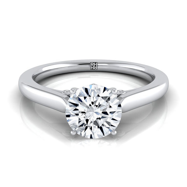 แหวนหมั้นเดี่ยวแบบสบายมือพร้อมแกลเลอรี่ม้วนเพชรทรงกลมเจียระไนแบบบริลเลียนท์แพลทินัม