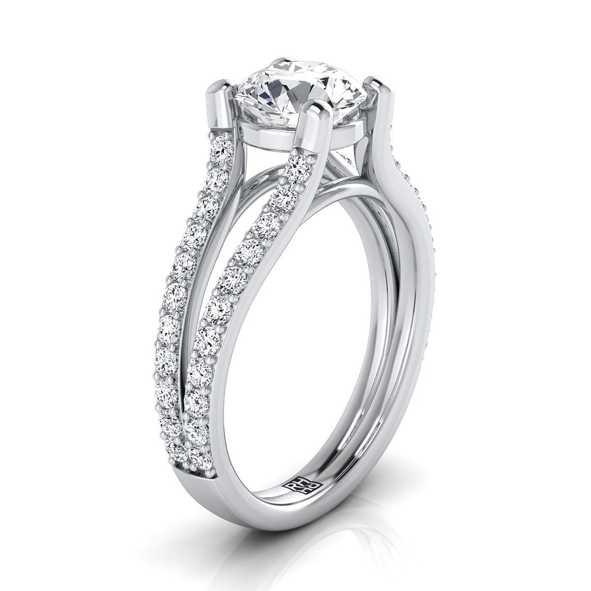คลาสสิกและสง่างาม แหวนหมั้นเพชรทองคำขาว 14k นี้นำเสนอเพชรเจียระไนแบบ Brilliant Cut (h-i/vs 0.58ctw) ที่ประดับอย่างสวยงามในแบบ Pave Set บนแหวนแบบ Split Shank สร้างประกายระยิบระยับที่งดงามให้ทุกคนได้ชื่นชม