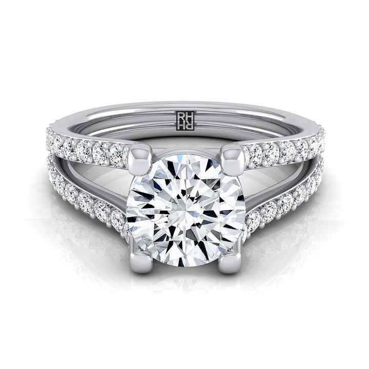 คลาสสิกและสง่างาม แหวนหมั้นเพชรทองคำขาว 18k นี้นำเสนอเพชรเจียระไนแบบ Brilliant Cut (h-i/vs 0.58ctw) ที่ประดับอย่างสวยงามในแบบ Pave Set บนแหวนแบบ Split Shank สร้างประกายระยิบระยับที่งดงามให้ทุกคนได้ชื่นชม