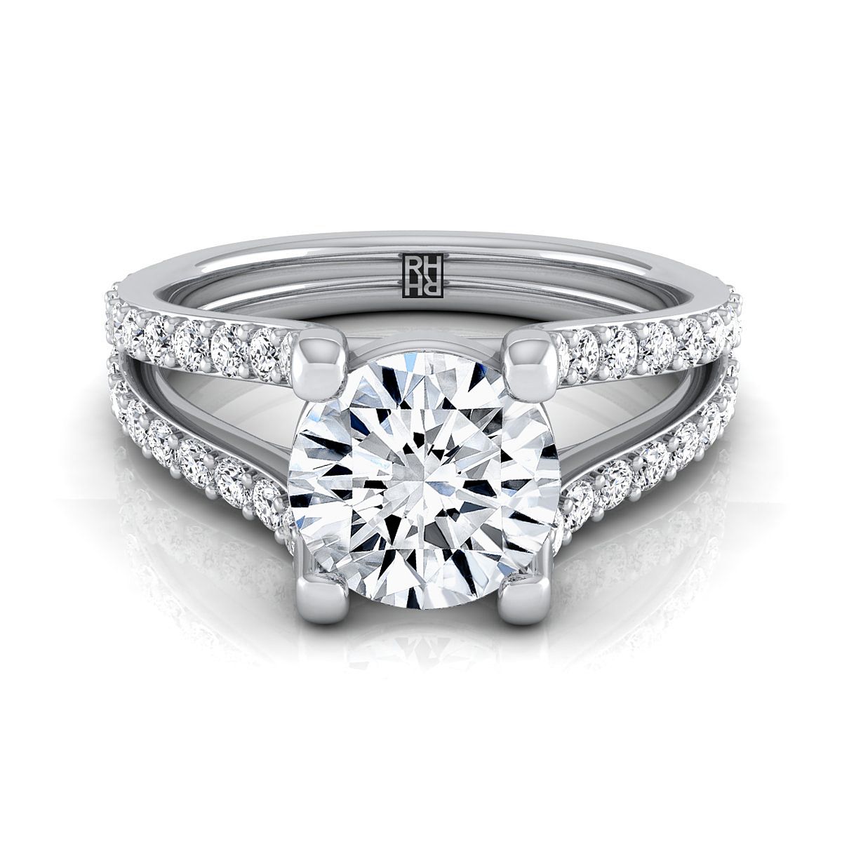 คลาสสิกและสง่างาม แหวนหมั้นเพชรแพลตตินัมนี้นำเสนอเพชรเจียระไนแบบ Brilliant Cut (h-i/vs 0.58ctw) ที่ประดับอย่างสวยงามในแบบ Pave Set บนแหวนแบบ Split Shank สร้างประกายระยิบระยับที่งดงามให้ทุกคนได้ชื่นชม