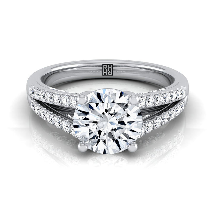 แหวนหมั้นเพชรทรงกลมเจียระไนแบบบริลเลียนท์แพลทินัม ดีไซน์แยกชั้นแบบฝรั่งเศสประดับเพชรปาเว่ - 1/3 กะรัตรวม