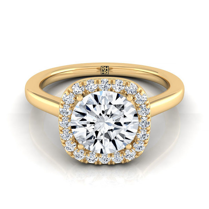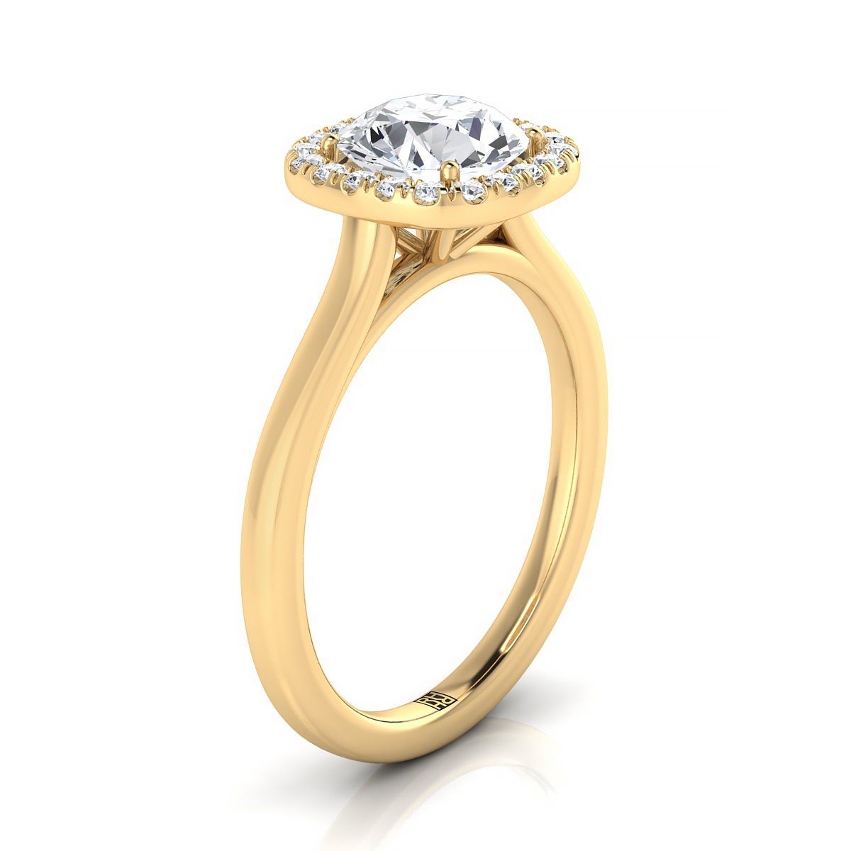 แหวนหมั้นสไตล์โมเดิร์นฮาโล่ฝรั่งเศสประดับเพชรทรงกลมเจียระไนแบบบริลเลียนท์ทองคำเหลือง 14K - 1/6 กะรัตรวม