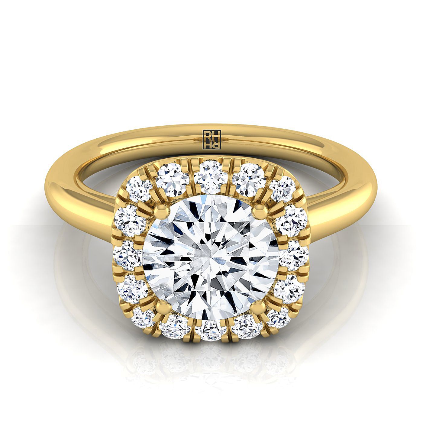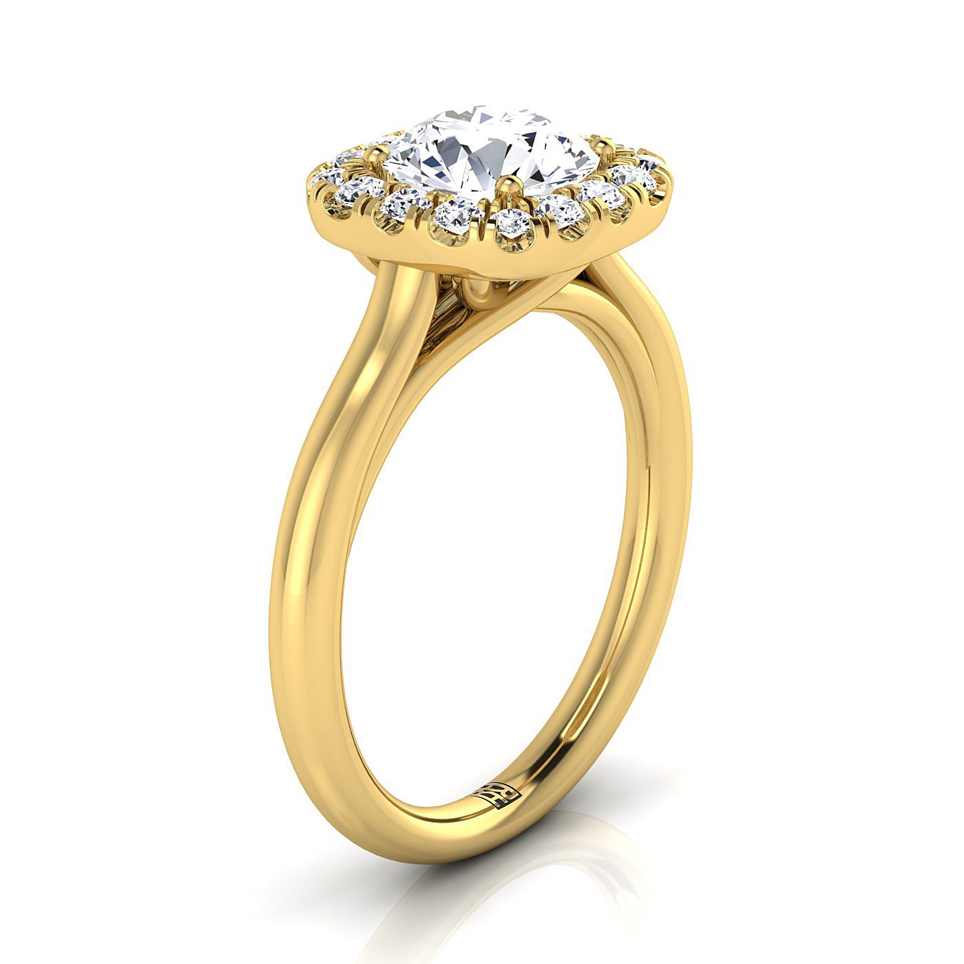 แหวนหมั้นทองคำเหลือง 18K ประดับเพชรวงกลมเจียระไนแบบ Brilliant ดีไซน์เรียบหรูและเรียบง่ายแบบ Halo บนแหวนขัดเงาสูง -1/4ctw