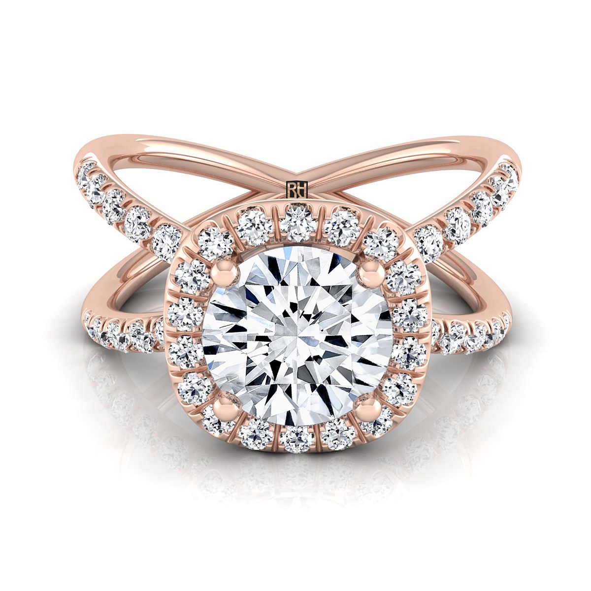 แหวนหมั้นเพชรทรงกลมเจียระไนแบบ Brilliant สีโรสโกลด์ 14K ดีไซน์ไขว้เปิดแบบฝรั่งเศส ประดับเพชรรวม 1/2 กะรัต