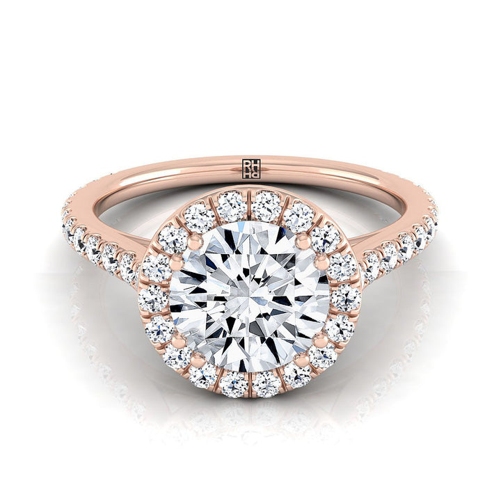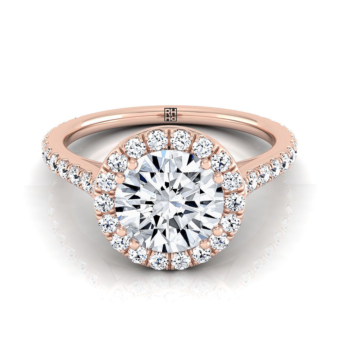 คลาสสิกและสง่างาม แหวนหมั้นเพชรแบบวงแหวนล้อมนี้พร้อมก้านแหวนแบบปาเว่ แสดงให้เห็นเพชรเจียระไนแบบบริลเลียนต์ (h-i/vs 0.45ctw) ที่ประดับอย่างสวยงามในตัวเรือนทองกุหลาบ 14k แบบคลาสสิก