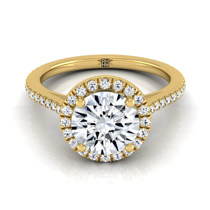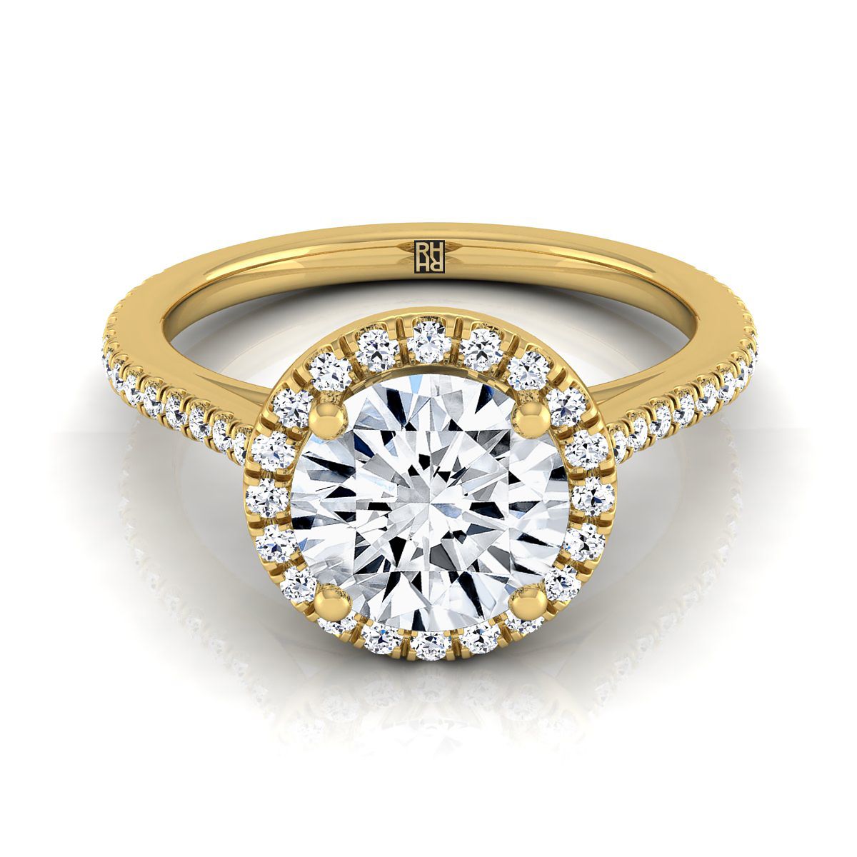 แหวนหมั้นทองคำเหลือง 14K ทรงกลมเจียระไนแบบคลาสสิก ฝรั่งเศสประดับเพชรแบบฮาโลและเส้นตรง - 1/4ctw