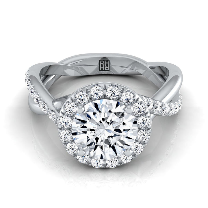 แหวนหมั้นเพชรทรงกลมเจียระไนแบบบิดล้อมรอบด้วยเถาวัลย์แพลทินัม - 1/2ctw