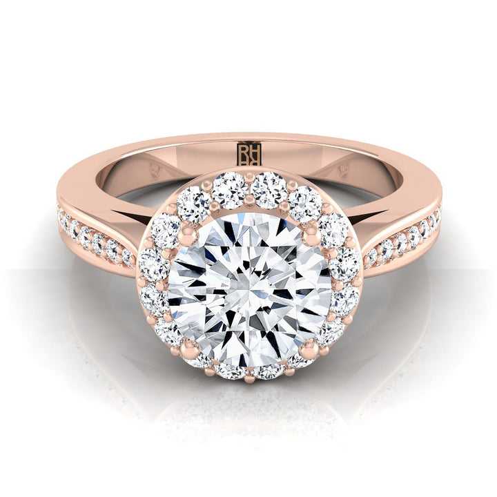 แหวนหมั้นเพชรทรงกลมเจียระไนแบบบริลเลียนต์ตรงแถวช่องฝรั่งเศสประดับเพชรล้อมทองกุหลาบ 14K - 3/8ctw