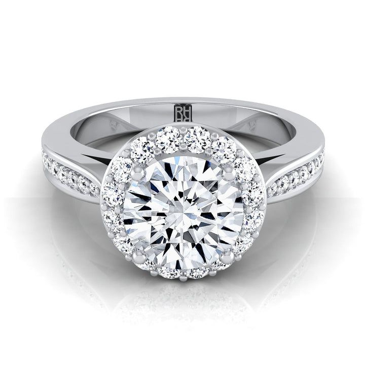 แหวนหมั้นเพชรทรงกลมเจียระไนแบบบริลเลียนต์ตรงแถวช่องฝรั่งเศสประดับเพชรแบบฮาโลว์ทองคำขาว 14K - 3/8ctw