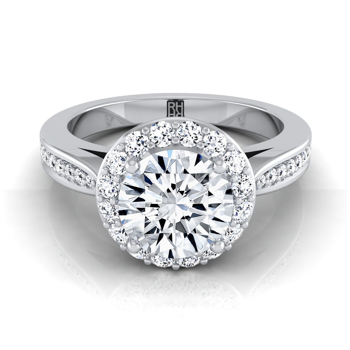 แหวนหมั้นเพชรทรงกลมเจียระไนแบบบริลเลียนต์ตรงแถวช่องฝรั่งเศสประดับเพชรล้อม 18K ทองคำขาว - 3/8ctw