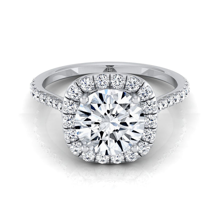 แหวนหมั้นเพชรทรงกลมเจียระไนแบบบริลเลียนท์แพลทินัม พร้อมฮาโลและหนามเตยร่วม - 3/8ctw