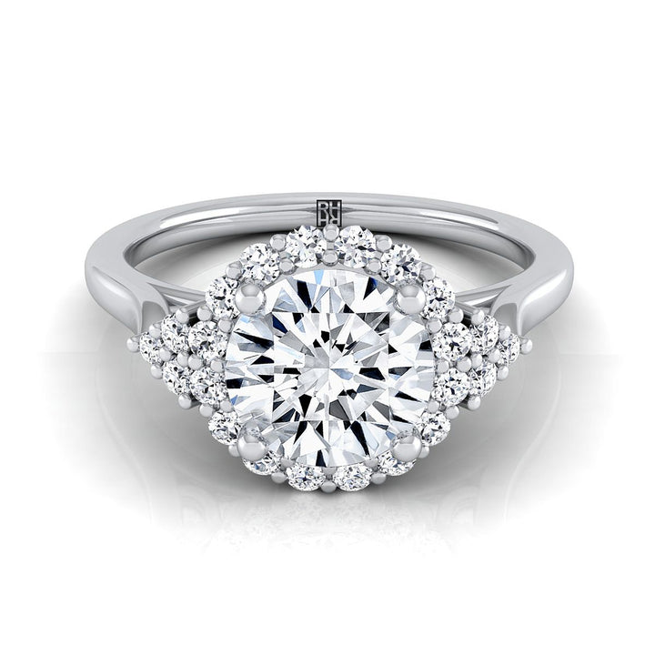 แหวนหมั้น Halo Pave ที่โดดเด่นด้วยสไตล์นี้ แสดงให้เห็นเพชรเจียระไนแบบ Brilliant Cut (h-i/vs 0.25ctw) ที่สวยงามซึ่งถูกประดับอย่างลงตัวในตัวเรือนทองคำขาว 18 กะรัตแบบคลาสสิก