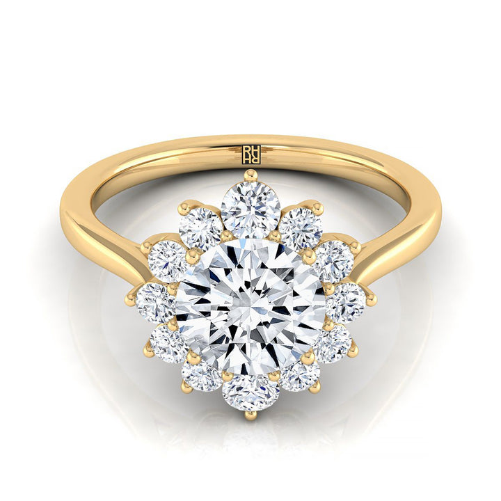 แหวนหมั้นประดับเพชรวงกลมเจียระไนแบบบริลเลียนต์ล้อมด้วยลายดอกไม้ทองคำเหลือง 18K - 1/2ctw