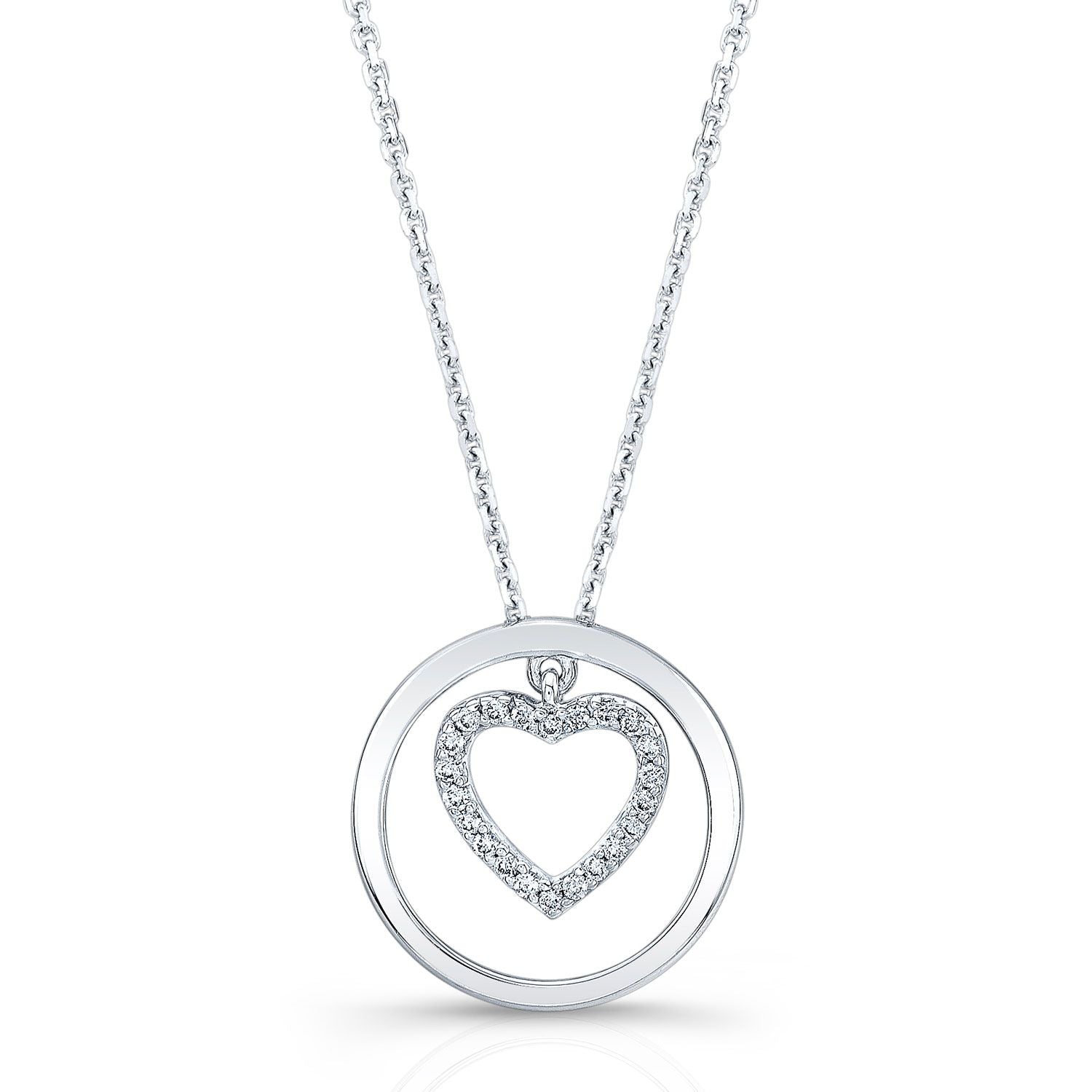 จี้ทองคำขาว 14 กะรัต พร้อมเพชรเจียระไนแบบ Brilliant Cut 22 เม็ด น้ำหนักรวม 0.08 กะรัต บนสร้อยคอแบบ Curb ยาว 17 นิ้ว