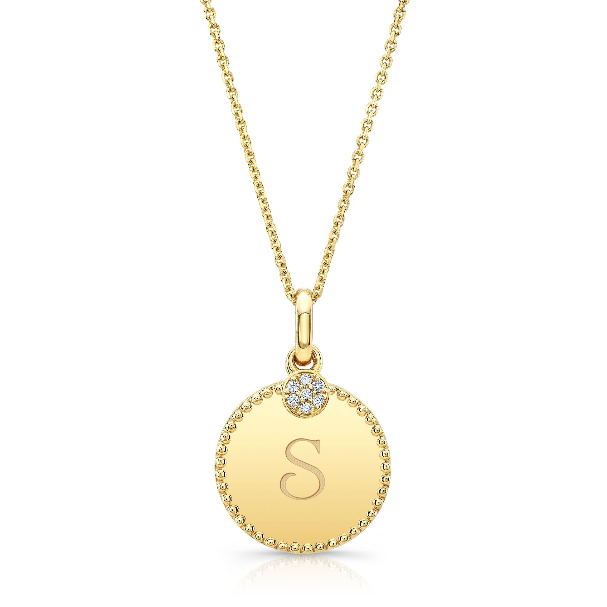 จี้แผ่นตัวอักษร "c" ประดับเพชรในทองคำเหลือง 14k