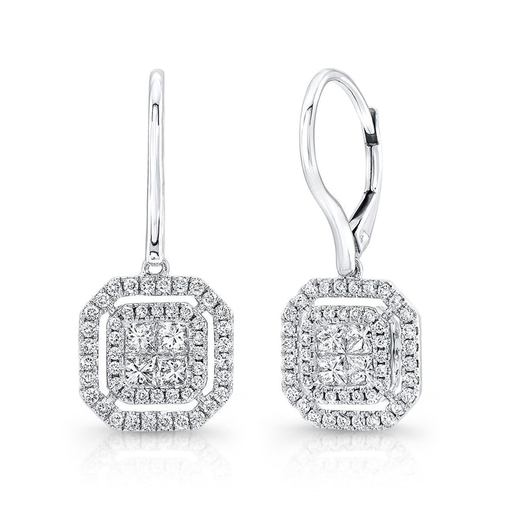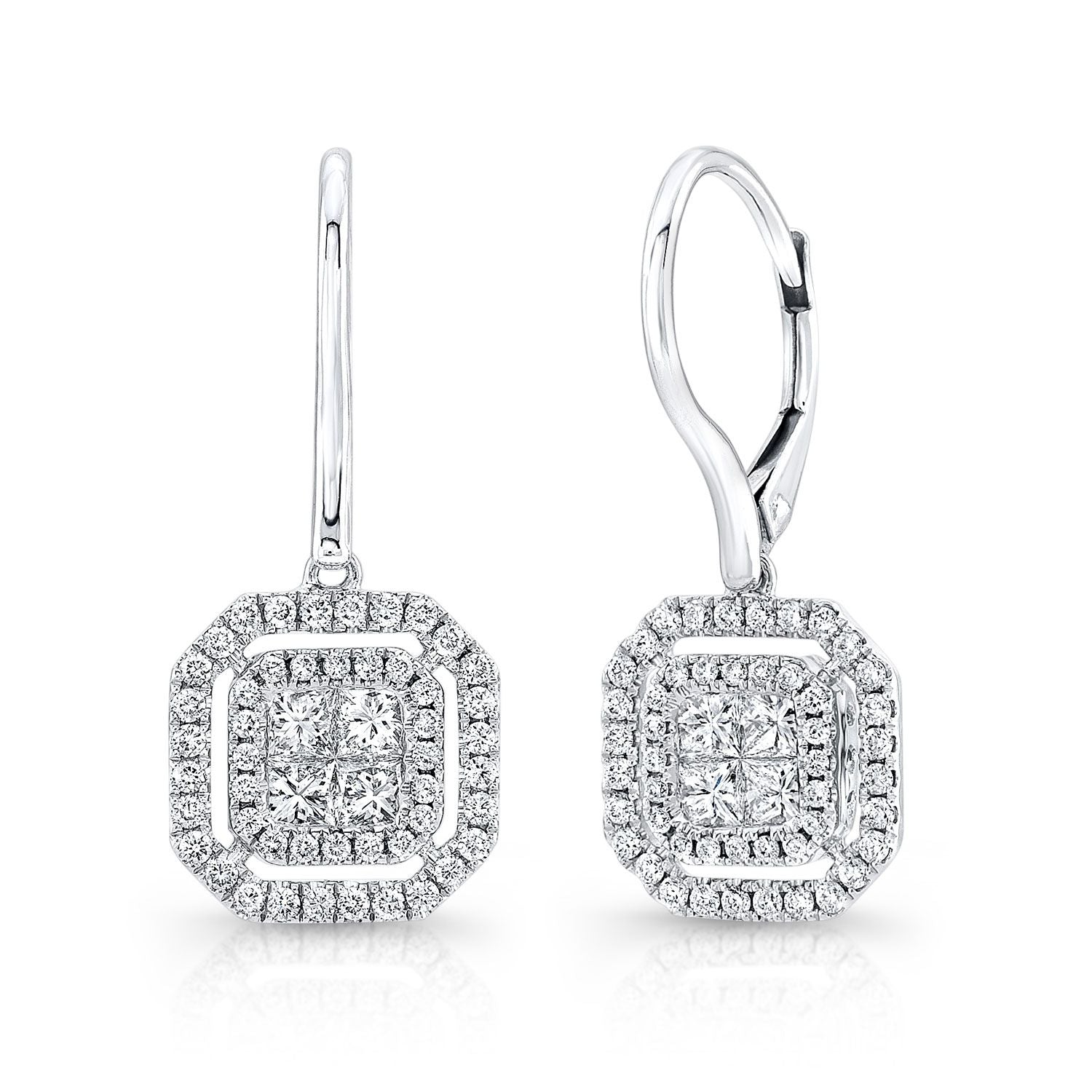 ต่างหูระย้ารูปเจ้าหญิงแบบฝังเพชรแบบมองไม่เห็น พร้อมกรอบแปดเหลี่ยมประดับเพชรและตะขอเกี่ยว