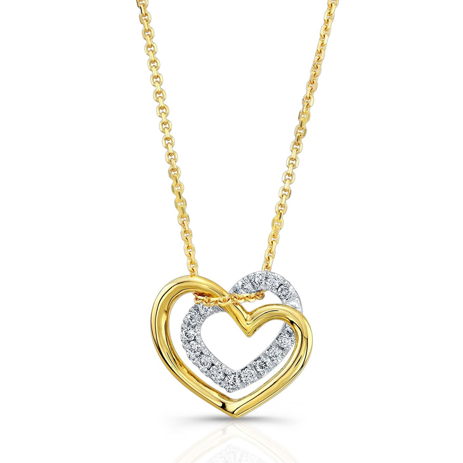 จี้หัวใจคู่ประดับเพชรแบบปาเว่ในทอง 14k สองโทนสี
