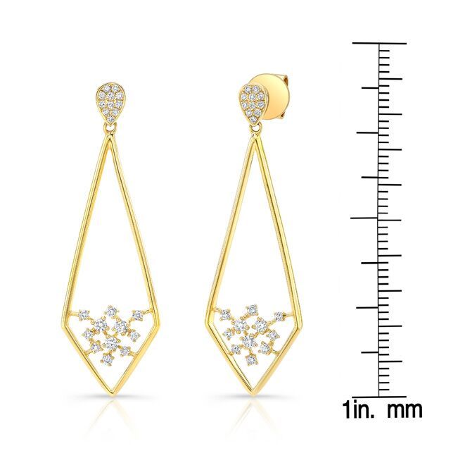 ต่างหูรูปเพชรยาวประดับเพชรแบบปาเว่ในทองคำเหลือง 14 กะรัต (3/8 กะรัตรวม)