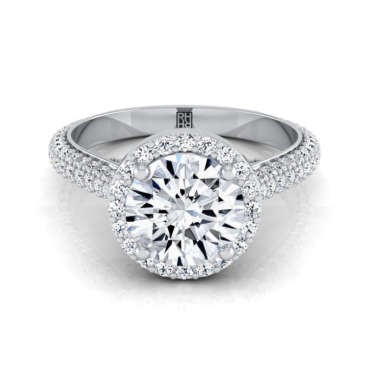 แหวนหมั้นเพชรทรงกลมเจียระไนแบบ Brilliant Micro-Pavé Halo ทองคำขาว 18K - 7/8ctw