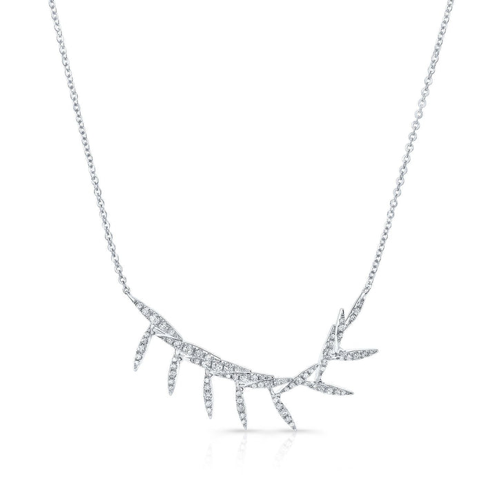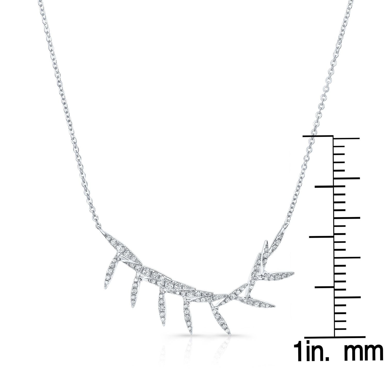 สร้อยคอใบลอเรลลอยเพชรปาเว่ในทองคำขาว 14k (สายปรับได้ 16-18)