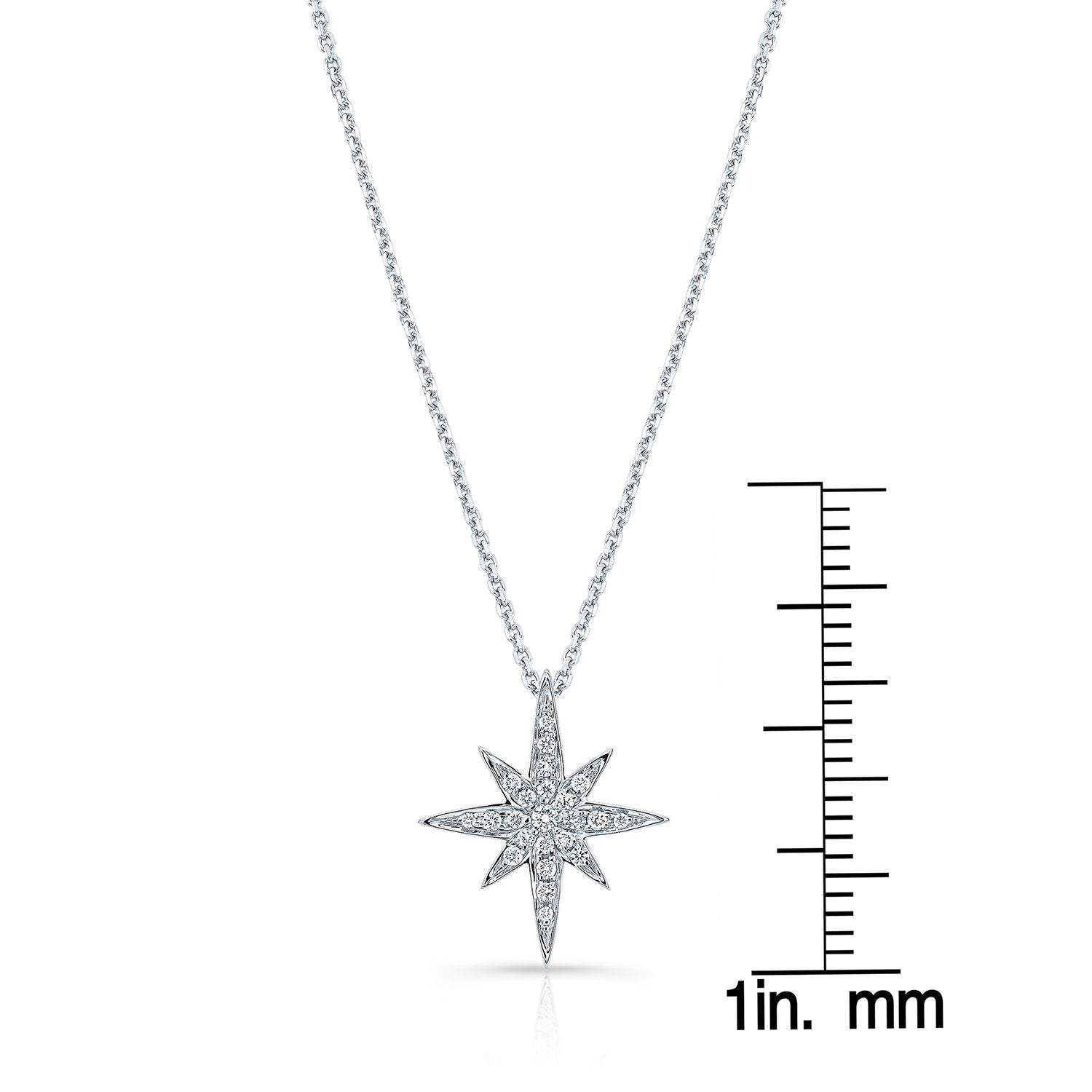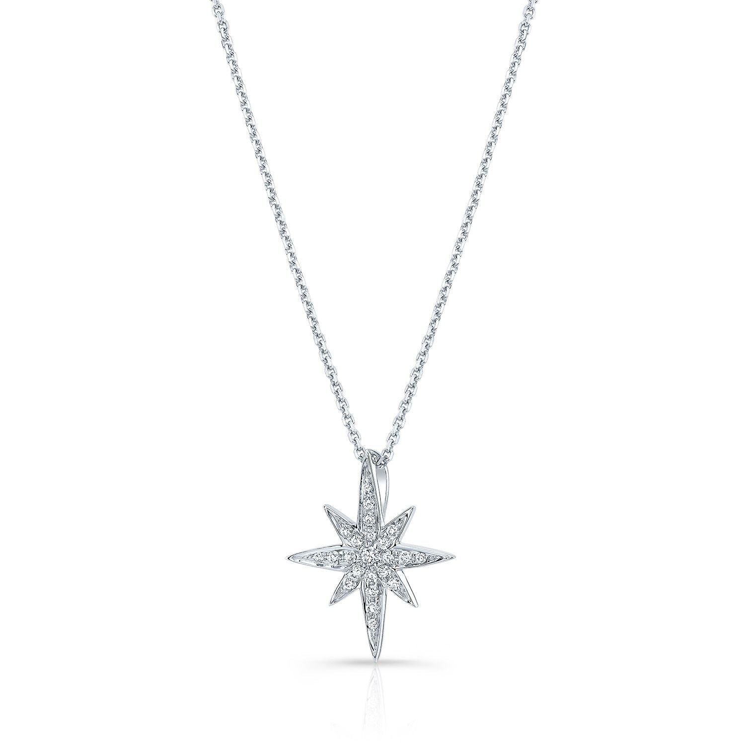 จี้ดาวเหนือประดับเพชรแบบปาเว่ในทองคำขาว 14 กะรัต สายสร้อย 17 นิ้ว
