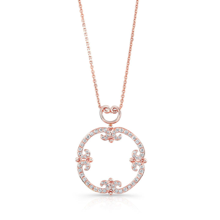 จี้กรอบเปิดลายโค้งประดับเพชรในทองกุหลาบ 14k