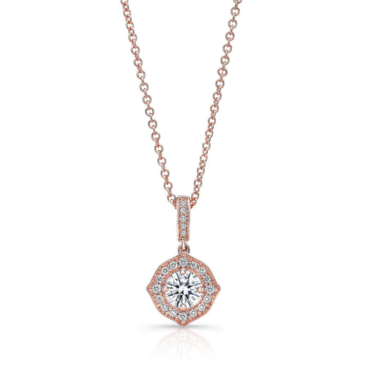 จี้เพชรปาเว่ในทองคำชมพู 14k (ปรับความยาวได้ 16-18")