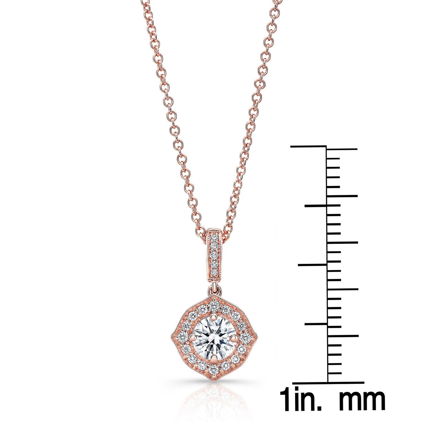จี้ทองคำชมพู 14k พร้อมเพชรเจียระไนแบบ Brilliant Cut 1 เม็ด น้ำหนัก 0.50ctw และเพชรเจียระไนแบบ Brilliant Cut 21 เม็ด น้ำหนัก 0.10ctw รวมโซ่โรโล่ปรับความยาวได้ 16-18 นิ้ว