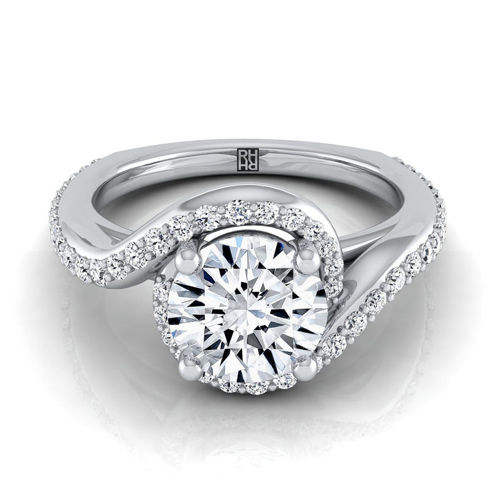 แหวนหมั้นเพชรทรงกลมเจียระไนแบบบริลเลียนท์แพลตตินัม ประดับเพชรแบบพาเว่ ฮาโล ทวิสต์ สเวิร์ล - 1/2ctw